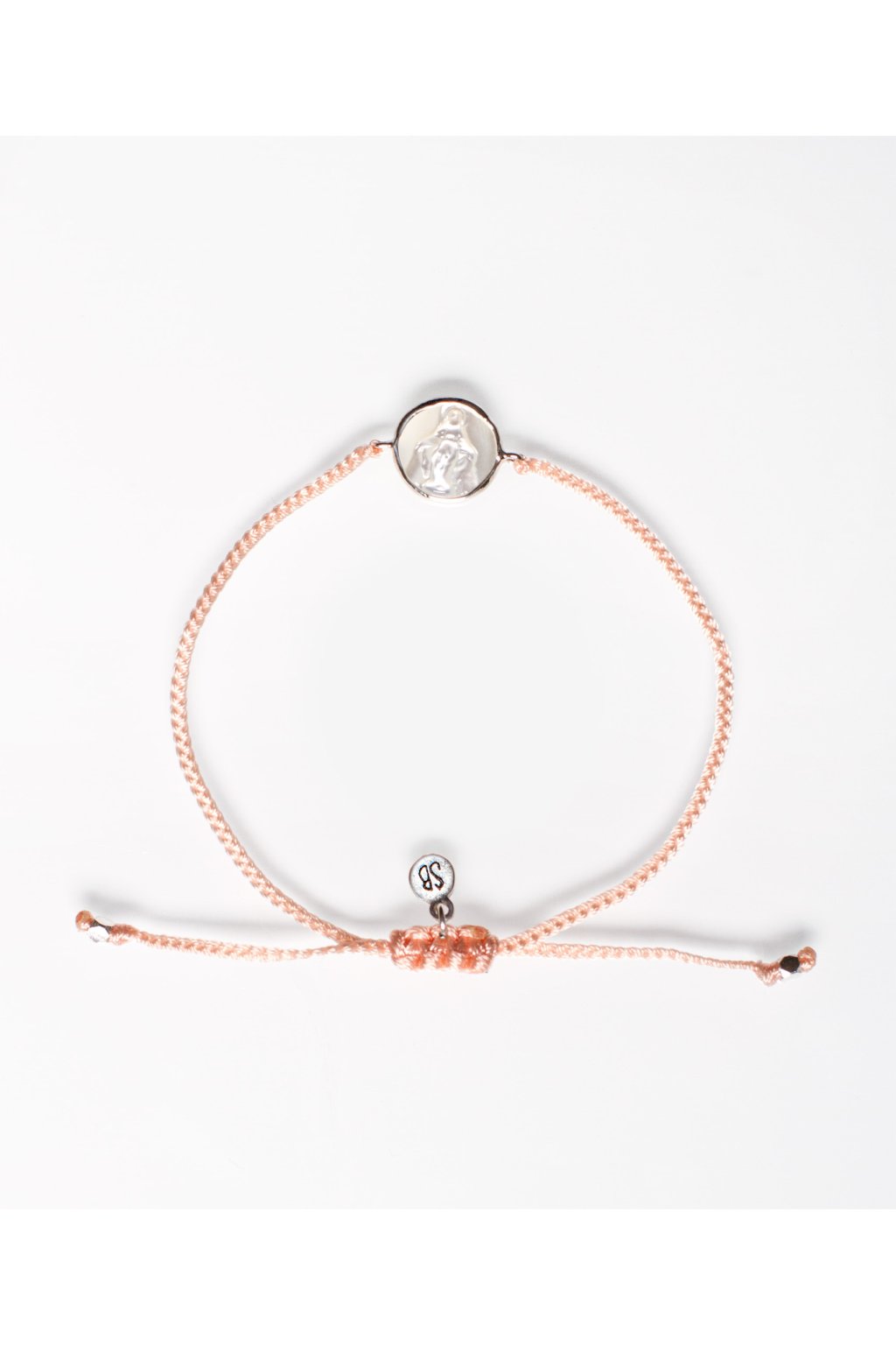 Medailon Panny Marie je vyřezán z perleti z mušliček, která je symbolem ochrany, čistoty a klidu. Perleť nádherně odráží světlo a dává náramku jemný, elegantní lesk.
